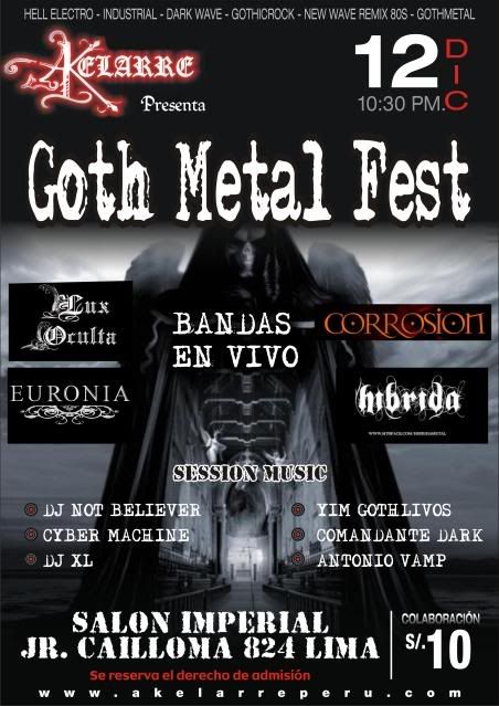 La banda de metal industrial Corrosión estará en vivo este 12 de diciembre en el Goth Metal Fest junto a Lux Oculta, Euronia, Hibrida; dicha banda estará presentando los temas de su nuevo disco que se titulará "MXM" y estará a la venta pronto en las tiendas musicales de Lima.